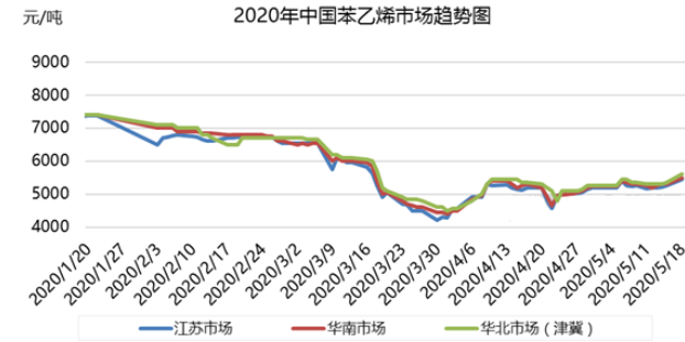 然商場的繼續(xù)下滑亦受到限制,5月上旬原油一改4月頹廢,重新打開一波上漲趨勢,短期內(nèi)苯乙烯的下滑也難看到更低的價(jià)格呈現(xiàn)。且在接連回調(diào)后,價(jià)格逐步趨于堅(jiān)挺,并觸及5月6日的前高水平至5400-5450。
