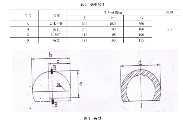 分度值為0.5mn 的長度測量器具及大、中、小號標(biāo)準(zhǔn)頭型。6.2.2檢驗步驟