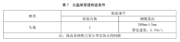 按照6.7規(guī)定的方法進(jìn)行檢驗,鋼錐不得穿透頭盔與頭型直接接觸。