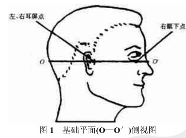 由左、右耳屏點和右眶下點確定的水平面,也稱頭水平面,即圖1中O—O’平面。