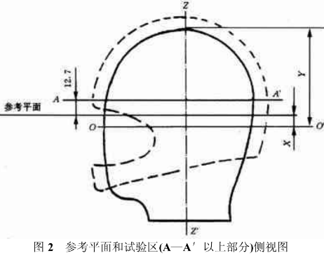 頭盔的檢驗范圍,即圖2中的A—A’以上部位。Z—Z’為中央垂直軸。
